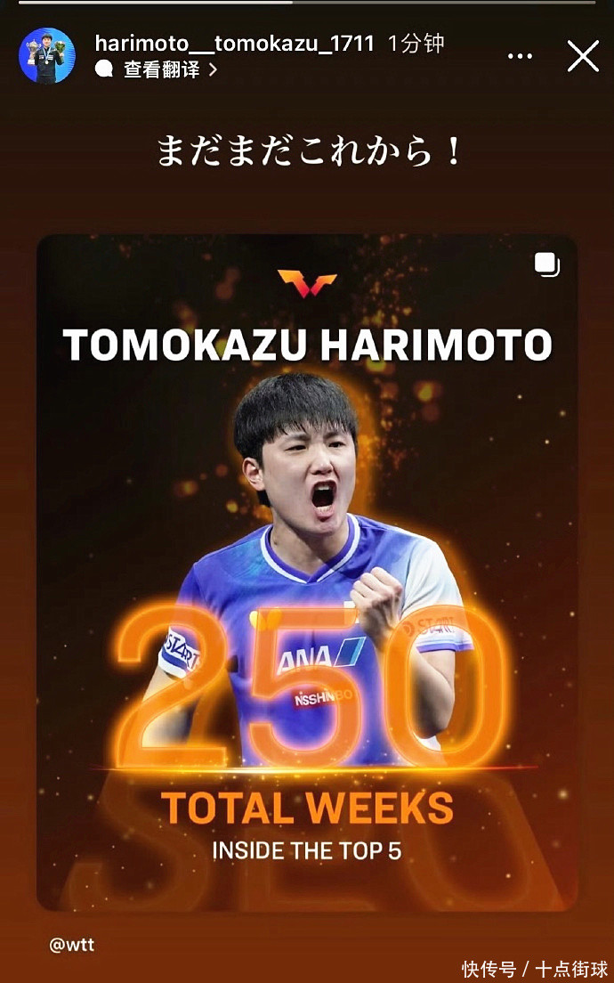 瑞典大满贯赛场上,张本智和刚以三局仅失10分的压倒性奏凯晋级16强;场外,他处事生活中累计250周位居宇宙前五的成立,创造了日本乒乓球的新历史